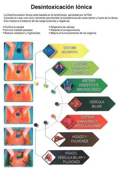 La terapia de Desintoxicación Iónica actúa por osmosis , tanto para transportar electrones al cuerpo y adherirse al exceso de iones positivos (que contienen sustancias tóxicas) como para excretarlos luego de que se desprenden de los tejidos a los que estaban adheridos. s a tener una venta especial por las festividades o una oferta semanal? Promuévela aquí para que tus clientes puedan verla y aprovechen la oportunidad.